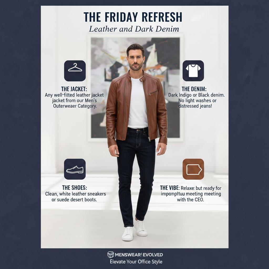 5. Der „Friday Refresh“: Leder und dunkler Denim