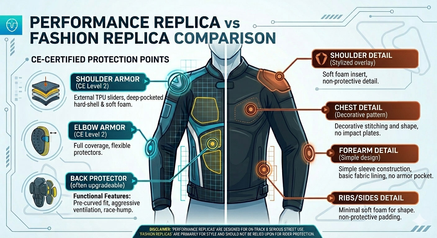 This guide explains what makes a MotoGP replica jacket safe for street riding—and what to watch out for before you buy.
