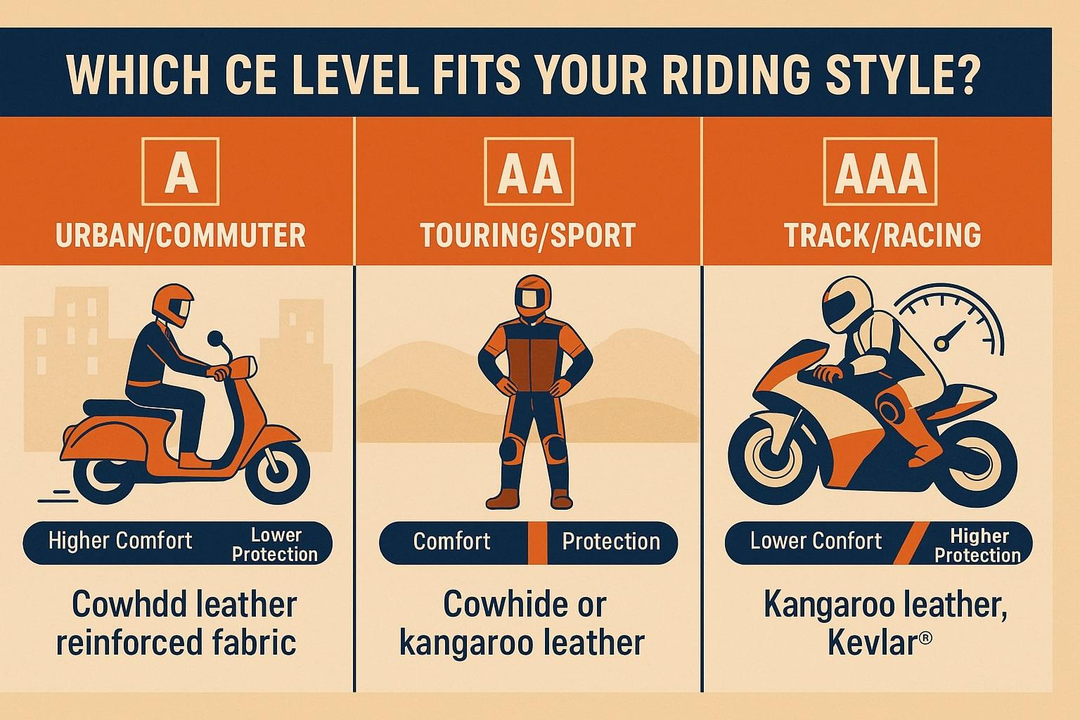 Achten Sie beim nächsten Kauf Ihrer Ausrüstung auf das CE-Etikett. Wählen Sie die passende Ausrüstung für Ihren Fahrstil und Ihre Sicherheitsanforderungen – ob leichte City-Kleidung oder ein CE-zertifizierter Rennanzug. Denn jeder Fahrer verdient Ausrüstung, die ihn genauso schützt wie seine Fahrweise.
