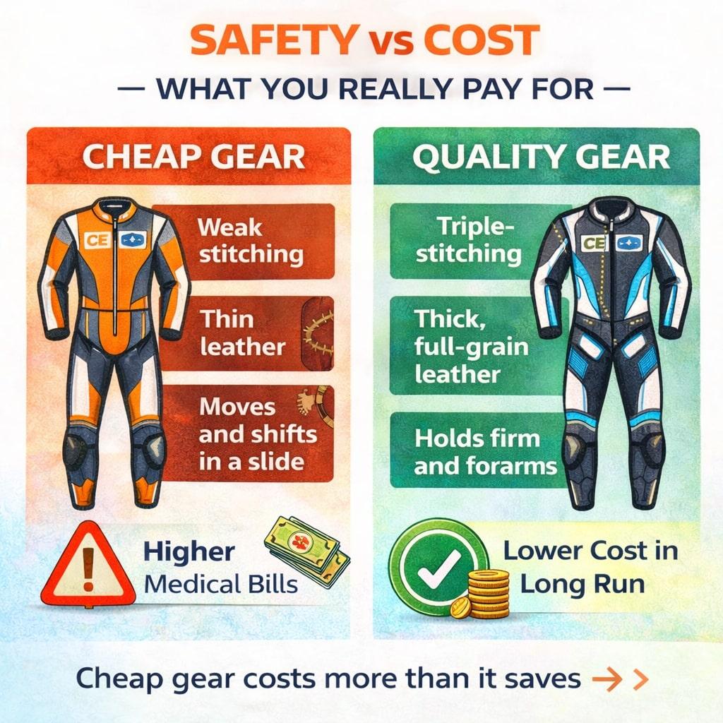 Dieser Guide schlüsselt die wahre Gleichung von Sicherheit vs. Kosten auf. Ich zeige Ihnen, warum hochwertige Lederausrüstung nicht nur besser schützt, sondern im Laufe der Zeit tatsächlich Geld spart.