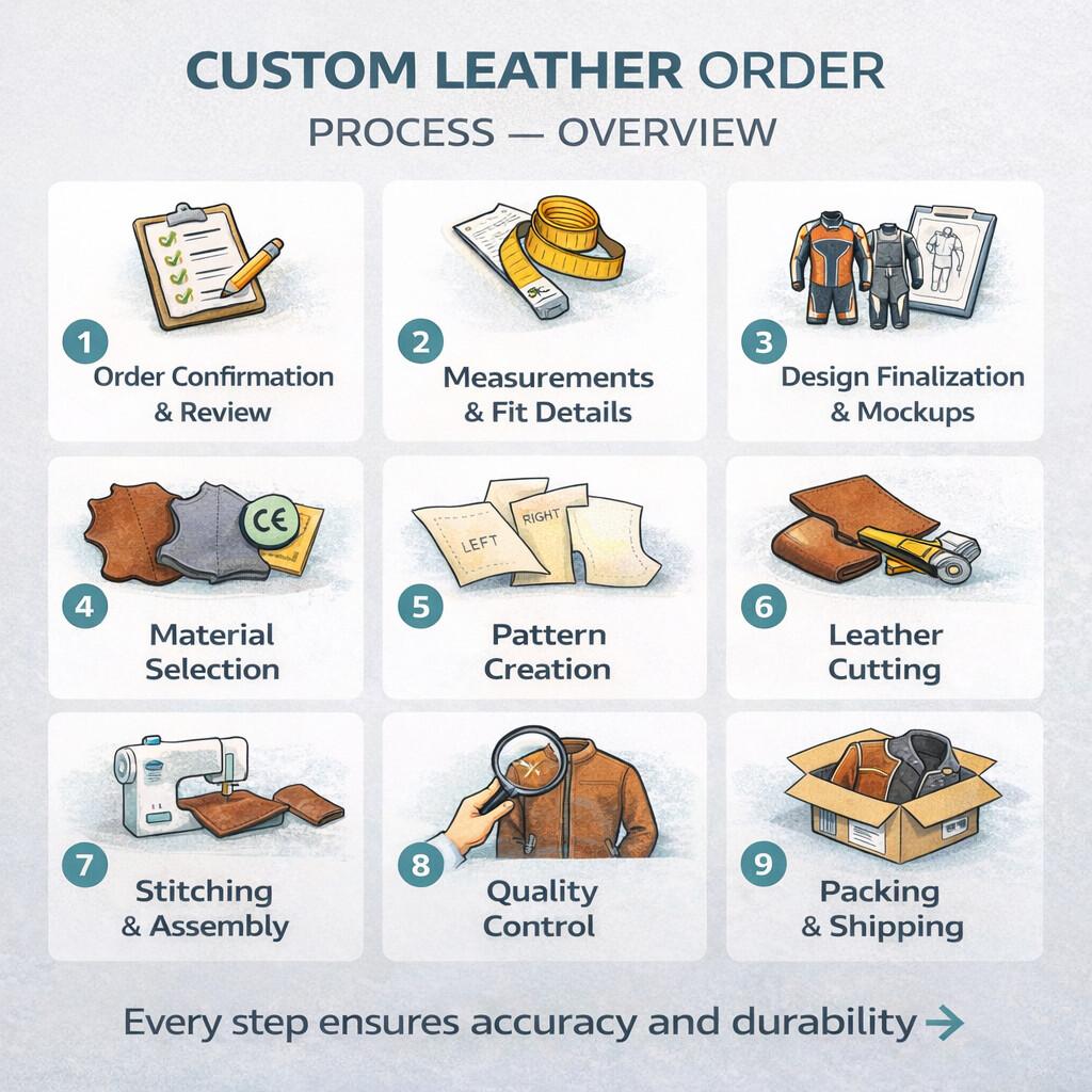 Starten Sie Ihre Bestellung für maßgefertigtes Leder mit vollem Vertrauen, da Sie nun genau wissen, was hinter den Kulissen geschieht.